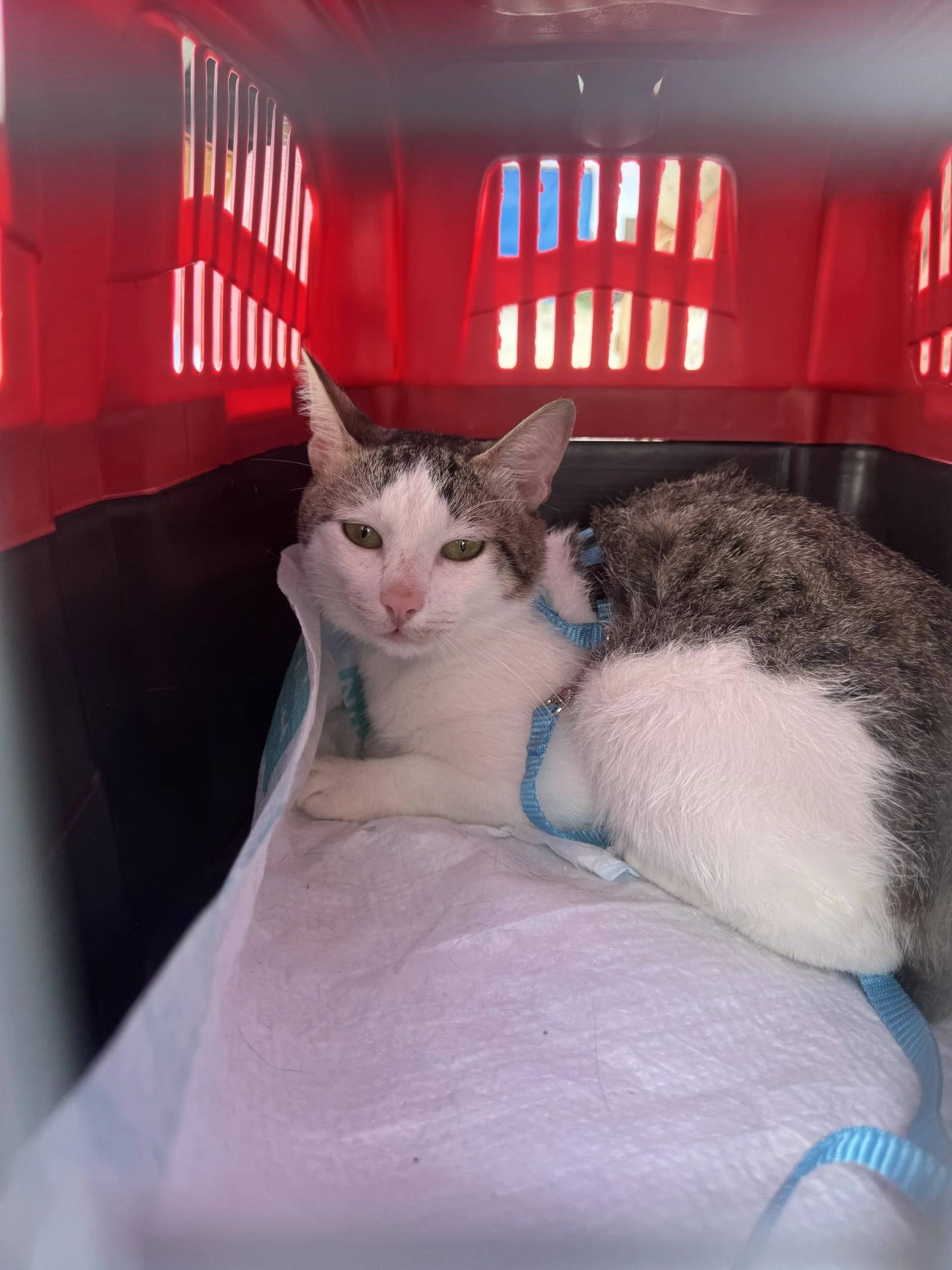 القط قام بالجري من شارع أبراج الهنا الى الشارع المقابل واختفى في الشوارع المجاورة لبعضها خلف كبابجي شيخ البلد في ميدان المطرية، القط ذكر تم تعقيمه ، لونه أبيض في رمادي (تدرجات للون الرمادي ) على منطقة الظهر والرأس